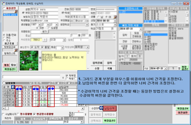 전체처리 납입이력/수강이력 너비 조절 기능 추가