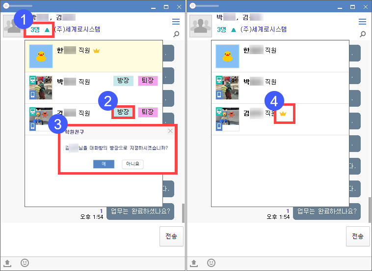📢 [업데이트 안내] 학원친구 메신저 PC 방장 변경 기능 추가학원친구 메신저 PC 버전에서대화자 리스트 내 방장 변경 기능이 추가되었습니다.